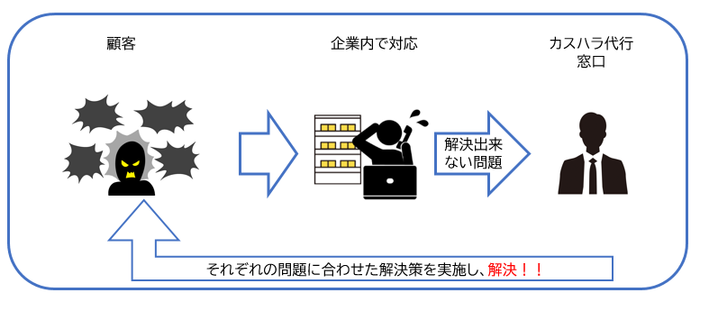 企業内で対応していても解決が難しく長期化しそうな場合、外部のサービスを導入し「クレーム対応の代行をする」と契約しておくことで、従業員が安心して勤務できます。また、事前にカスハラ対応専門の外部企業にリスク管理や従業員向けの研修を行うことも、善管注意義務を守ることになります。
