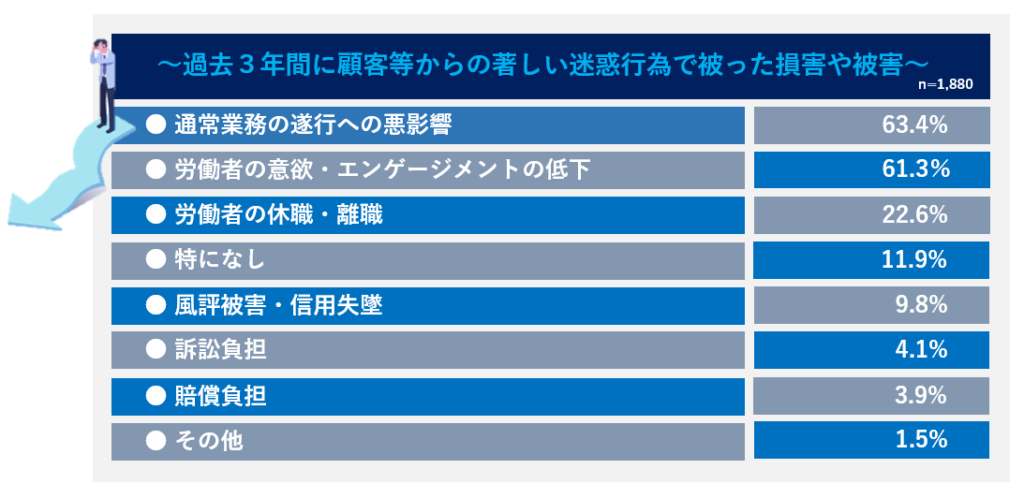企業や店舗で働く従業員をターゲットに、いわゆるカスハラと呼ばれる不当要求の事例が増加しています。こうした行為は、恐怖心による強いストレスを引き起こし、従業員のメンタルヘルスに深刻な影響を及ぼします。結果として企業の業績にも悪影響を与える可能性が高く、将来的にはステークホルダーへと被害が広がるリスクも懸念されます。