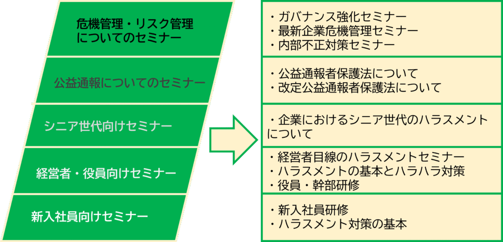ハラスメント、コンプライアンス違反を未然に防ぐために、ぜひ日本公益通報サービスのセミナーを実施することをお勧めします。
