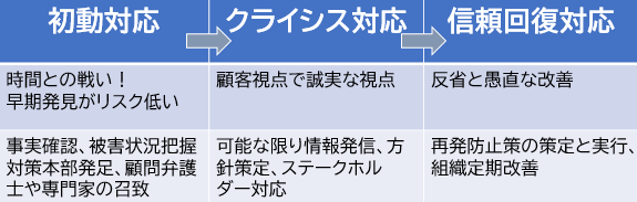 そして今回、企業危機管理である「問題が発生した後の対応」として、
