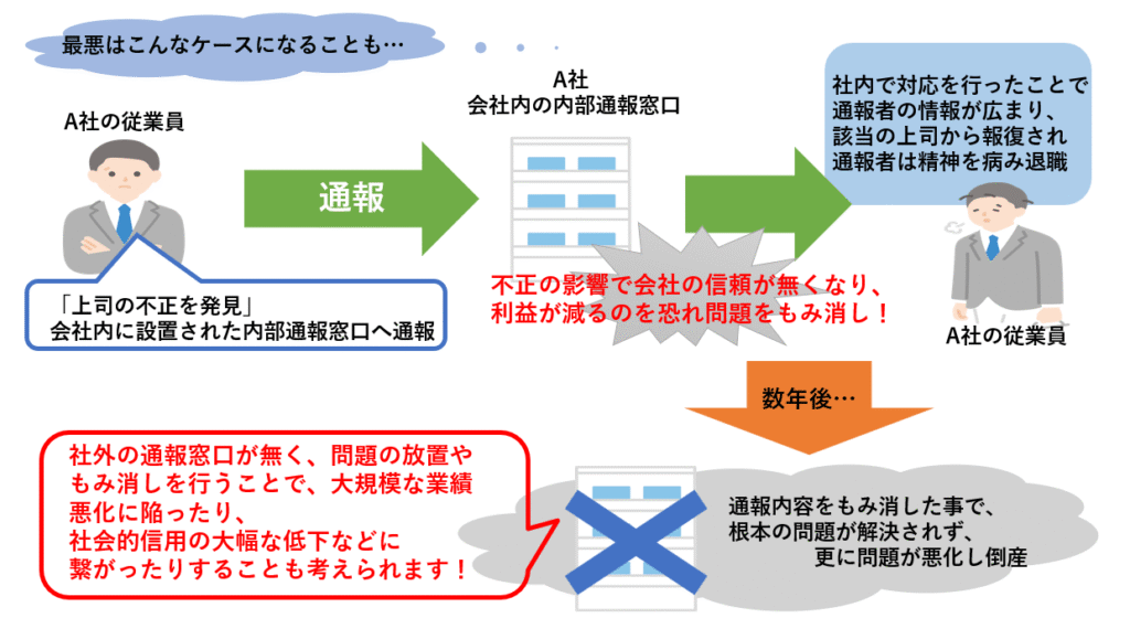 内部通報窓口については、いくつかの問題があることが指摘されています。