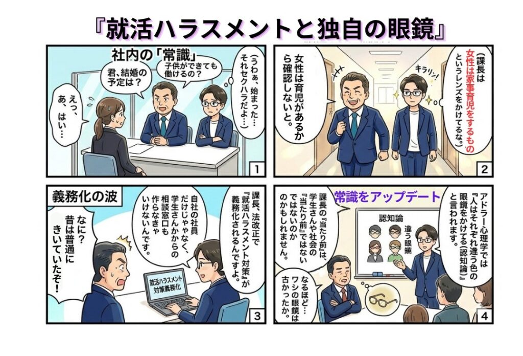 就活セクシュアルハラスメント対策が義務化されます~アドラー心理学「眼鏡の理論」で読み解く、公益通報が会社を救う理由