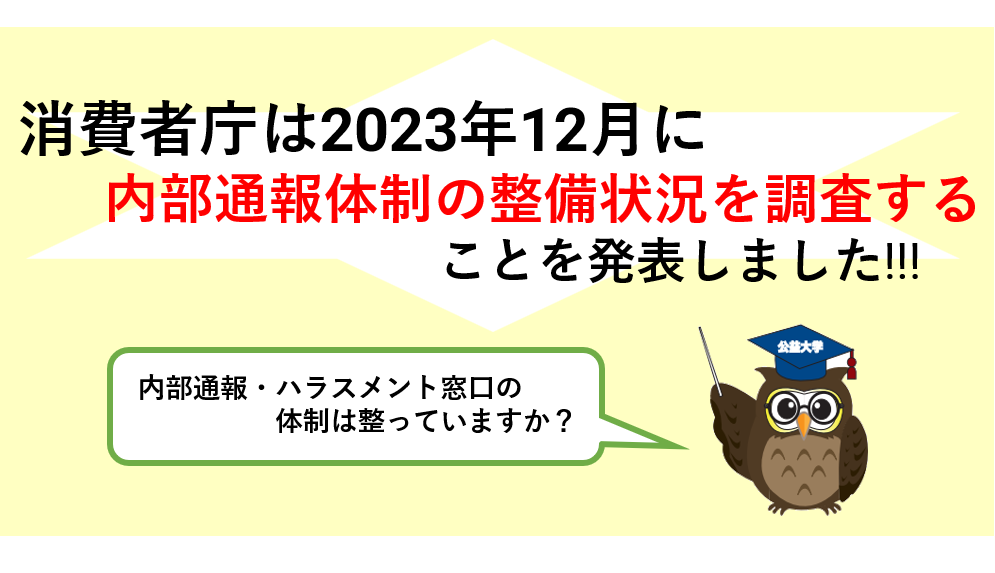 消費者庁は12月に内部通報体制の整備状況について企業1万社に対してアンケートを実施することを発表しました。
