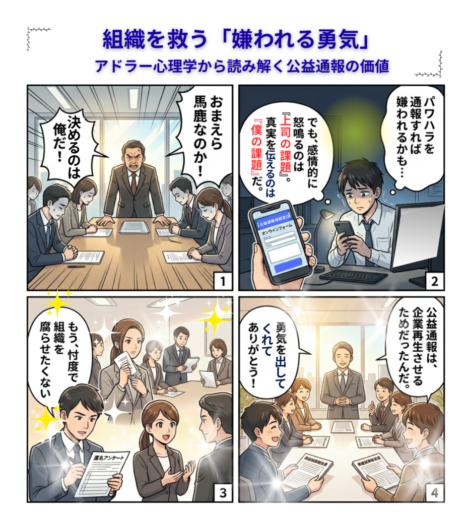 彼らは市長という絶対的な権力者に「嫌われる」リスクを背負いながら、録音データを提供し、真実を語りました 。これこそが、アドラーの言う「勇気」の実践であり、公益通報の原点です。