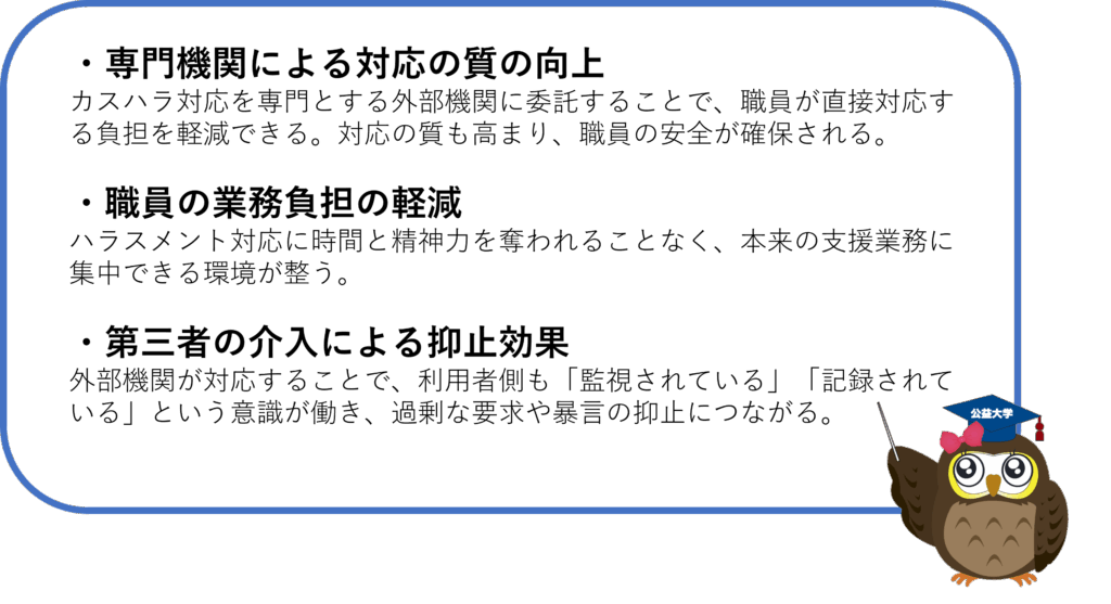 今後、福祉現場で同様の悲劇を繰り返さないためには、外部相談窓口の設置と、カスハラ対応業務の外部委託が不可欠です。