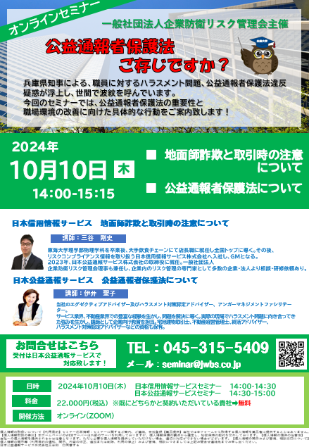 2024年10月10日(木)の一般社団法人企業防衛リスク管理会主催による