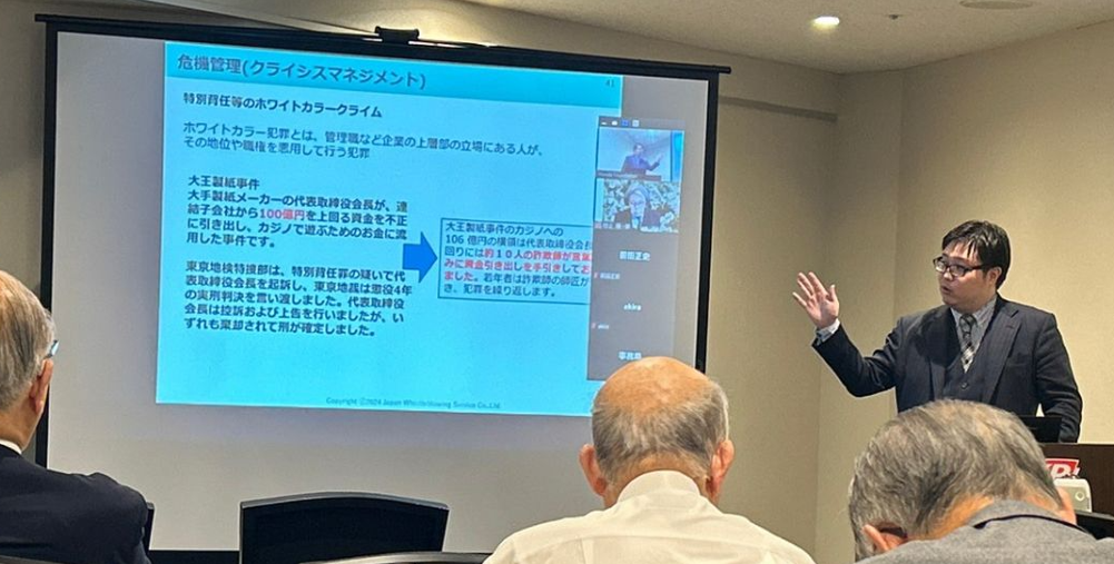 本セミナーでは、企業危機管理において不可欠な知識を共有し、コンプライアンス、ハラスメント、内部統制に関する、事例も交えた重要な情報をご提供致しました。